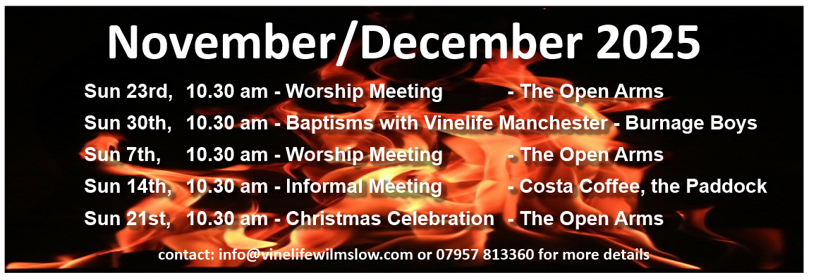 Vinelife Church Wilmslow was founded in 2000 as the SHED (Salvation, Healing, Equipping & Discipleship) Christian Fellowship coming under the church planting scheme of what was then Manchester Vineyard, led by Martyn and Linda Smith. Our leaders, Robert & Cheryl Larkman, completed several Leadership and Church Planting training programmes with them and have also undergone training with Bethel Leaders Network